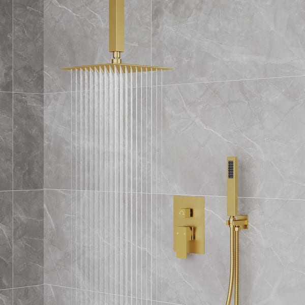 Single-Handle 2-Spray Wall Mount 10 in. Shower Faucet 2.5 GPM with Anti Scald with Hand Shower Faucet in. Brushed Gold