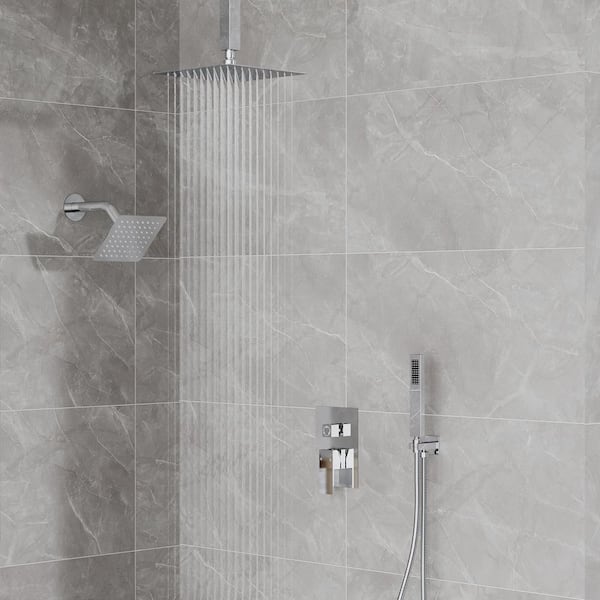 Single Handle 3-Spray Patterns Square Wall Mount Shower Faucet and Handheld 2.5 GPM with Adjustable Flow Rate in. Chrome