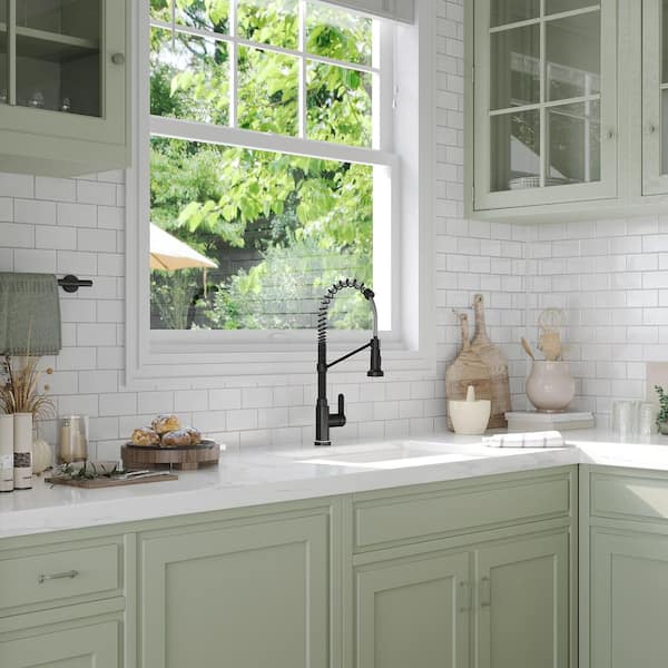 Single-Handle Pull-Down Sprayer Kitchen Faucet with LED Base, FastMount, Dual Sprays in Stainless Steel in Matte Black