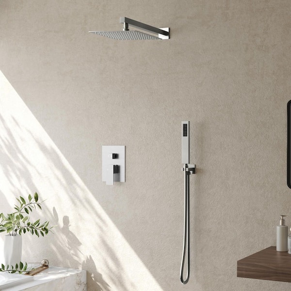 Single-Handle Rain 2-Spray Square Wall Mount 10 in. Dual Shower Head Fixed and Handheld Shower Head 2.5 and 1.8 GPM