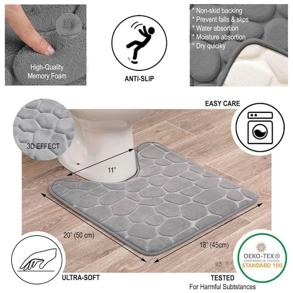 3D Cobble Stone Shaped 20 in. L x 18 in. W Memory Foam Contour Mat Microfiber Non Slip Light Gray