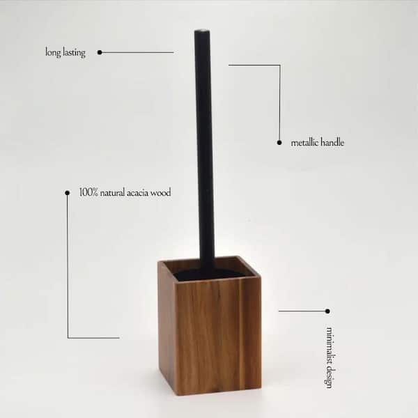 Acacia Square Toilet Brush and Holder Set Brown
