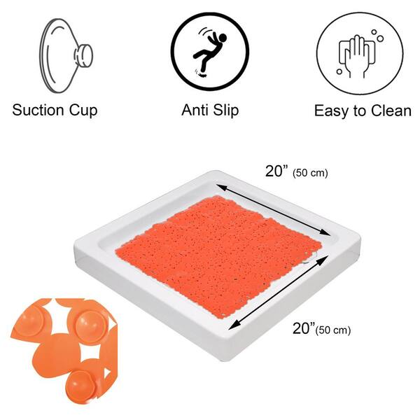 Bubbles 20 in. x 20 in. Non-Slip Square Shower Mat in Solid Orange
