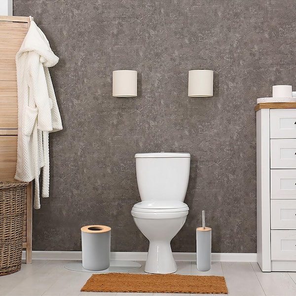 Gray Toilet Brush and Holder Set Padang with Bamboo Top - Stylish Bathroom Cleaning Solution for Modern Homes