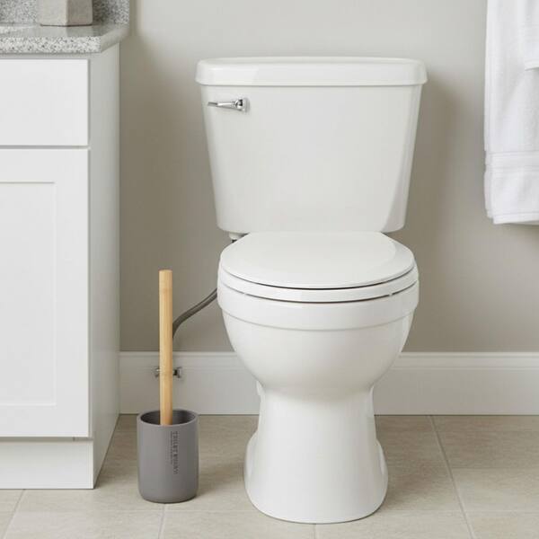 Modern Matte Gray Toilet Brush Set with Natural Bamboo Handle - Polyresin Bathroom Cleaning Accessory