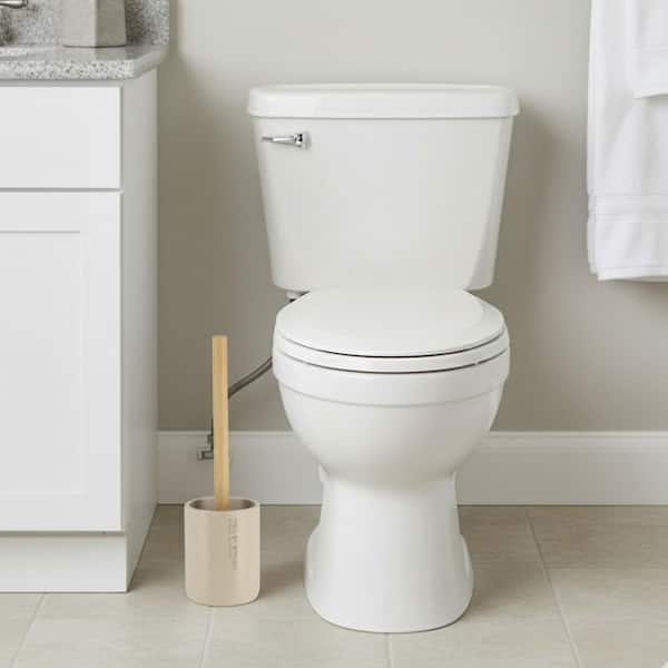 Stylish Matte Beige Toilet Brush and Holder Set with Natural Bamboo Handle - Polyresin Bathroom Cleaning Solution