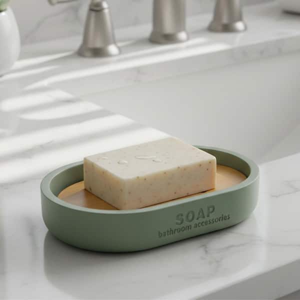 WILLIS Freestanding Soap Dish with Draining Bamboo Insert Green