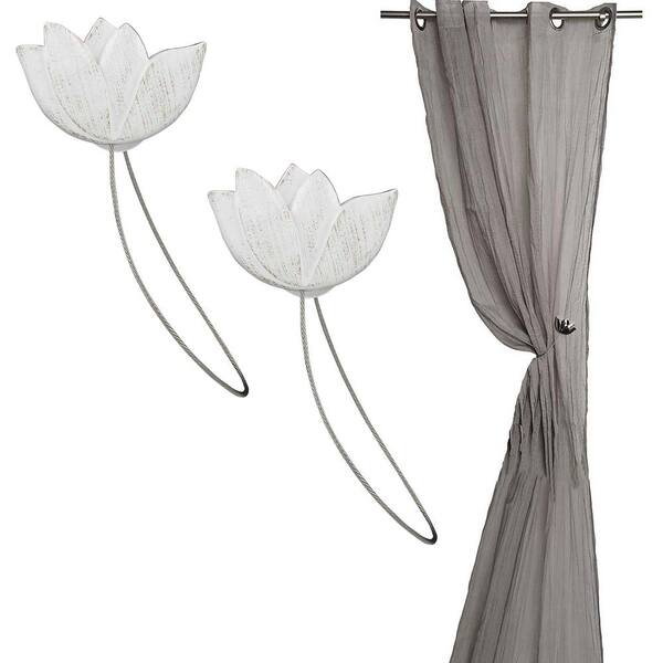 White/Gold Magnetic Resin Tulip Curtain Tie Back (Set of 2)