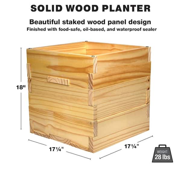 10 ft. Premium String Light Pole and Extra Large 18 in. Natural Wooden Planter Box Set