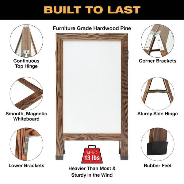 40 in. x 22 in. Indestructible A-Frame Whiteboard, Brown