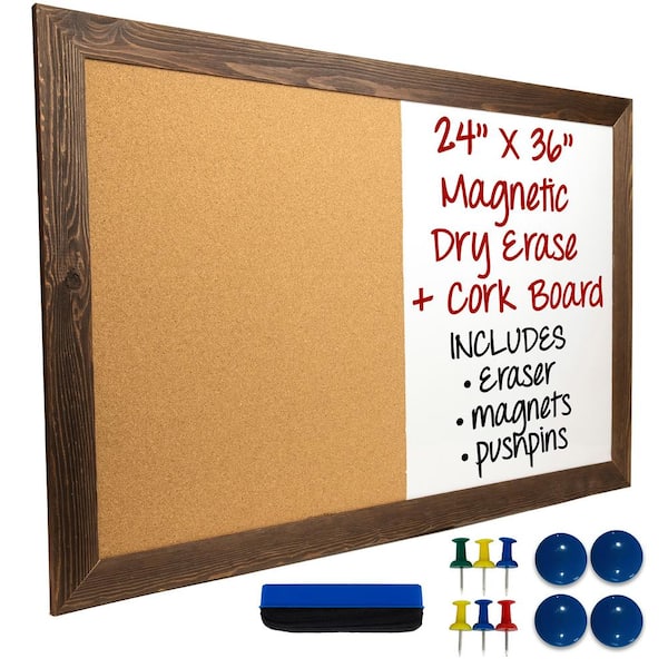 Excello 24 in. x 36 in. Dry Erase Cork Board Combo, Rustic Brown