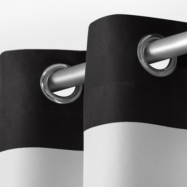 Cabana Black Stripe Polyester 54 in. x 120 in. Grommet Top Light Filtering Curtain Panel (Set of 2)