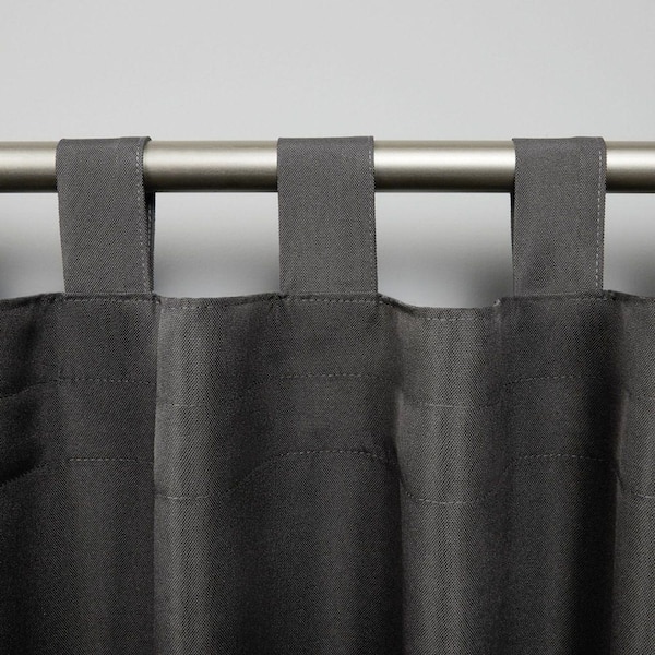 Cabana Charcoal Solid Light Filtering Hook-and-Loop Tab Indoor/Outdoor Curtain, 54 in. W x 96 in. L (Set of 2)