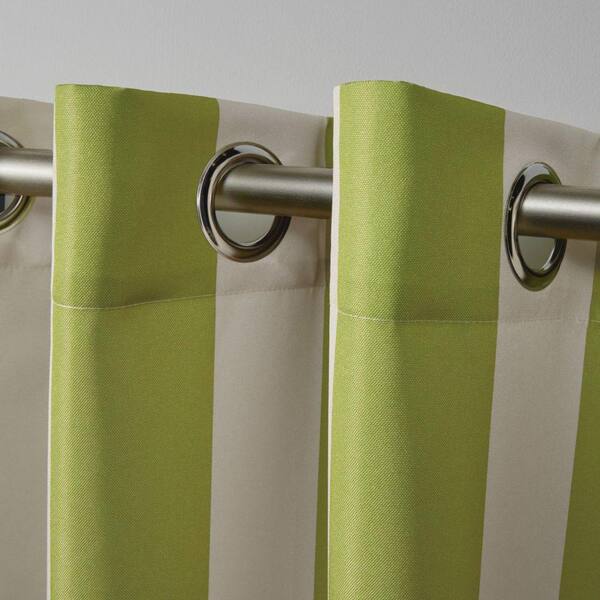 Canopy Stripe Light Filtering 54 in. W x 96 in. L Grommet Top Indoor/Outdoor Curtain Panel in Kiwi/Sand (2 Panels)