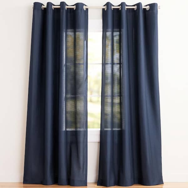 Loha Peacoat Blue Solid Light Filtering Grommet Top Curtain, 54 in. W x 96 in. L (Set of 2)