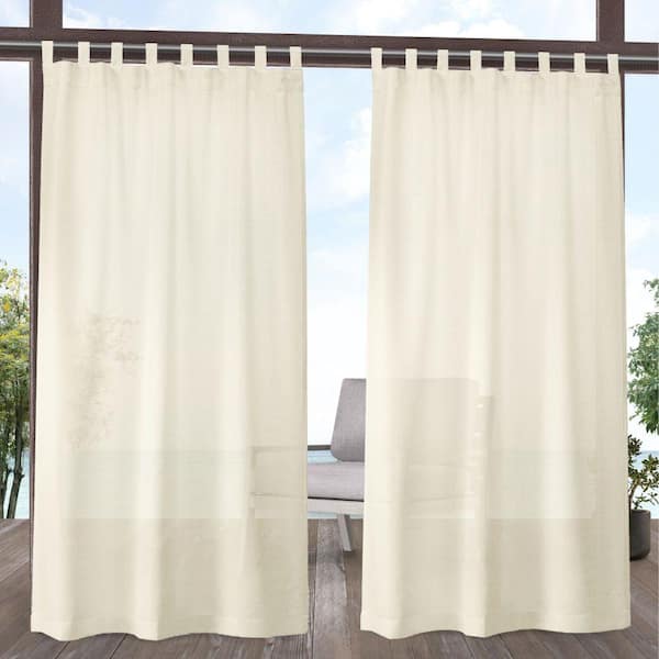 Miami Ivory Solid Sheer Hook-and-Loop Tab Indoor/Outdoor Curtain, 54 in. W x 108 in. L (Set of 2)
