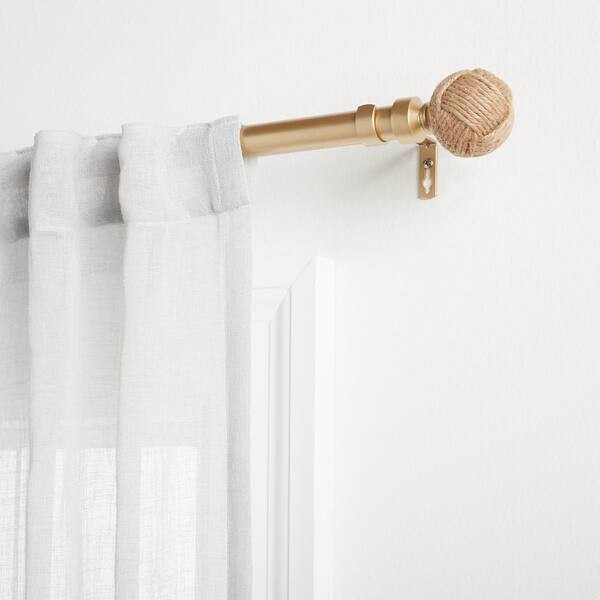 Rope Knot 66 in. - 120 in. Adjustable Length 1 in. Dia Curtain Rod Kit in Gold with Finial