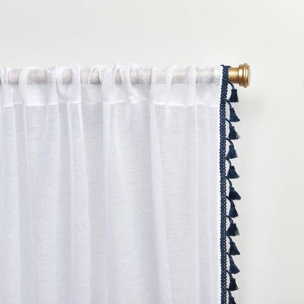 Tassels Indigo Solid Sheer Rod Pocket Curtain, 54 in. W x 96 in. L (Set of 2)