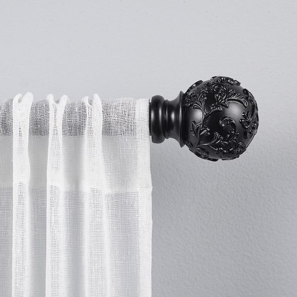 Vine 66 in. - 120 in. Adjustable 1 in. Single Curtain Rod Kit in Matte Black with Finial
