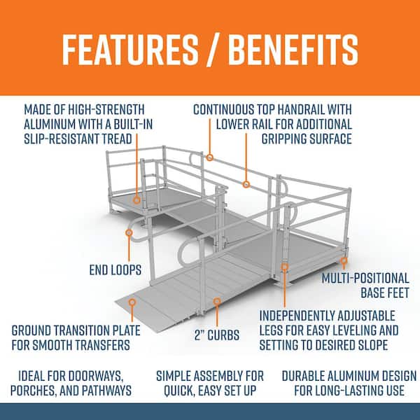 PATHWAY 10 ft. L-Shaped Aluminum Wheelchair Ramp Kit with Solid Surface Tread, 2-Line Handrails and (2) 4 ft. Platforms