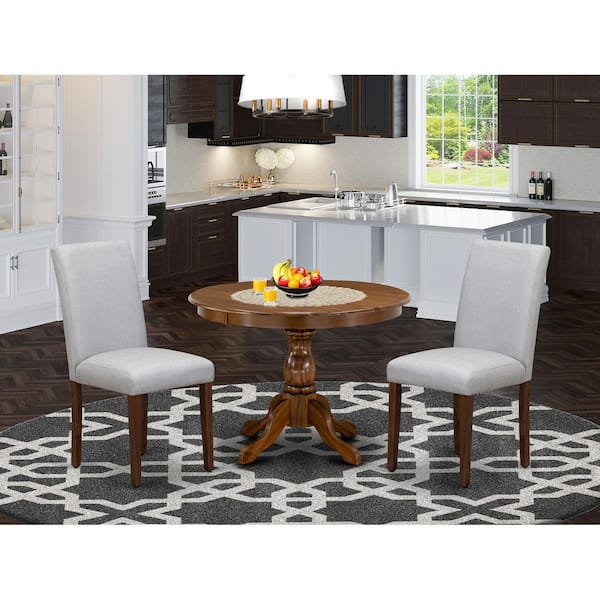 3-Piece Acacia Walnut Finish Solid Wood Top - Round Upholstered Dining Room Set (Seats-4)
