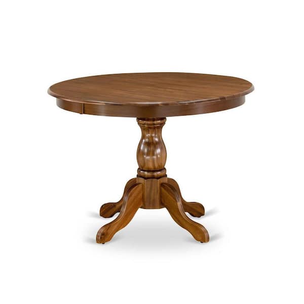 3-Piece Antique Walnut Finish Solid Wood Top-Round Upholstered Dining Room Set-Seats 4