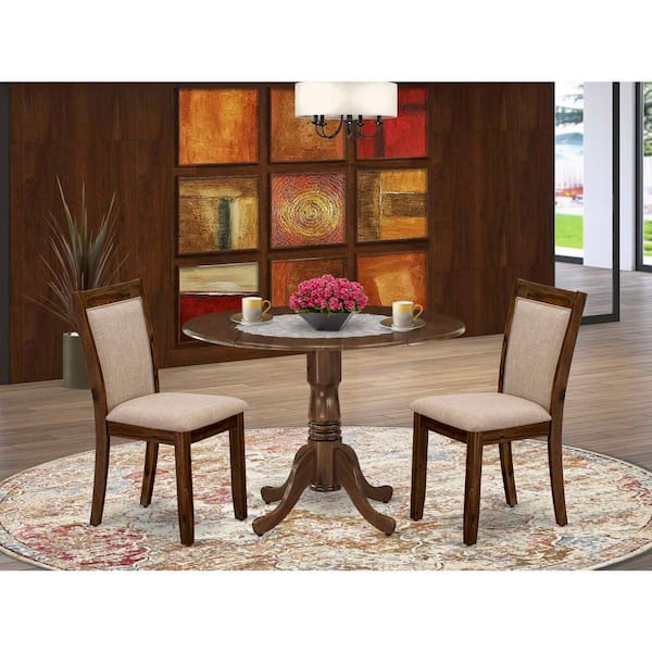 3-Piece Antique Walnut Solid Wood Top - Dining Room Set with Dropleaf - Seats-4