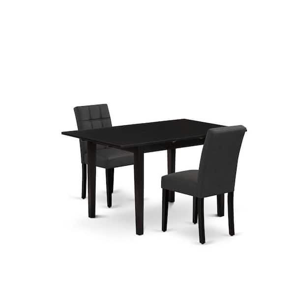 3-Piece Black Finish Rectangular Solid Wood Top with Butterfly Leaf Dining Table Set