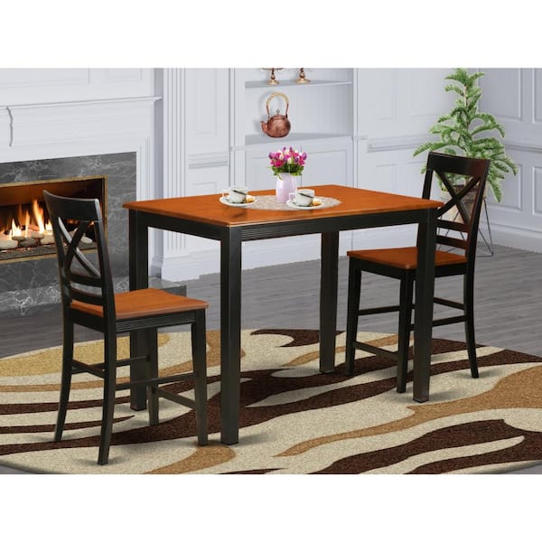 3-Piece Black Finish Solid Wood Top Counter Height Dining Table Set