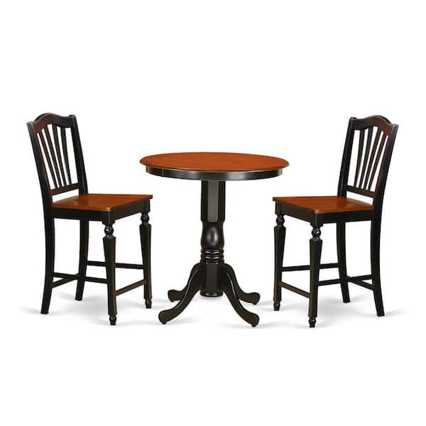 3-Piece Black Finish Solid Wood Top - Dining Room Set - Seats 4