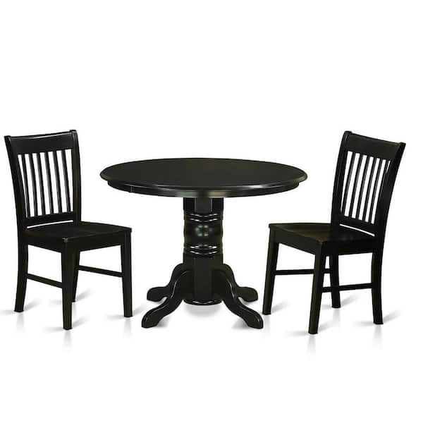 3-Piece Black Finish Solid Wood Top - Dining Room Set - Seats 4