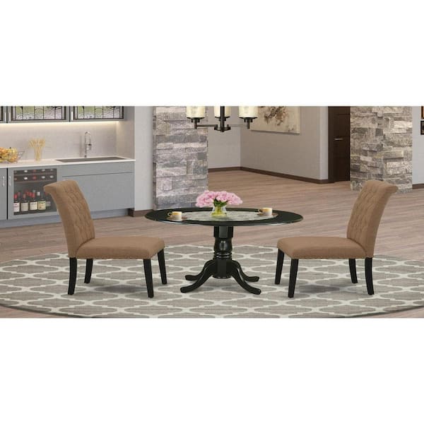 3-Piece Black Finish Solid Wood Top - Round Dining Room Set with Dropleaf - Seats 4
