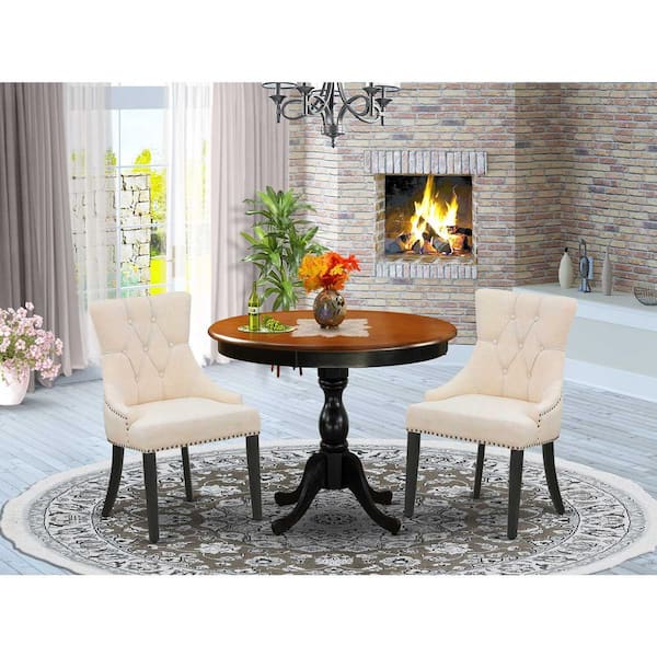 3-Piece Black and Cherry Finish Solid Wood Top - Button Tufted Upholstered Dining Room Set - Seats-4