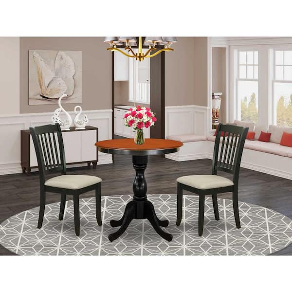 3-Piece Black and Cherry Finish Solid Wood Top - Dining Room Set - Seats 4