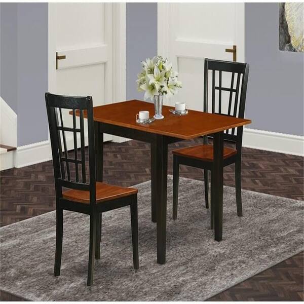 3-Piece Black and Cherry Finish Solid Wood Top Dining Table Set