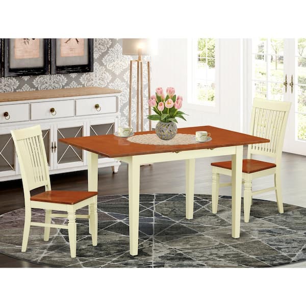 3-Piece Buttermilk and Cherry Finish Solid Wood Top Dining Table Set