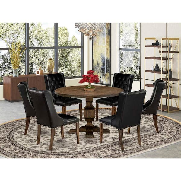 3-Piece Distressed Jacobean Finish Solid Wood Top Dining Table with 2-Chairs with Lattice Back