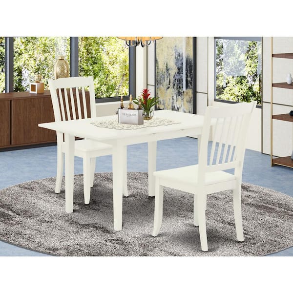 3-Piece Linen White Finish Rectangular Solid Wood Top With Butterfly Leaf Dining Table Set
