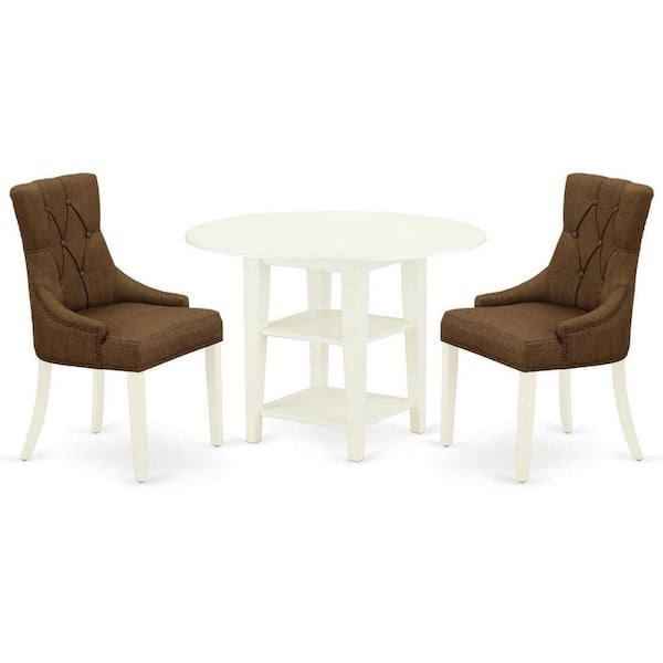 3-Piece Linen White Finish Round Solid Wood Top with Dropleaf Dining Table Set