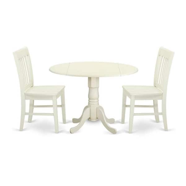 3-Piece Linen White Finish Solid Wood Top - Dining Room Set - Seats 4