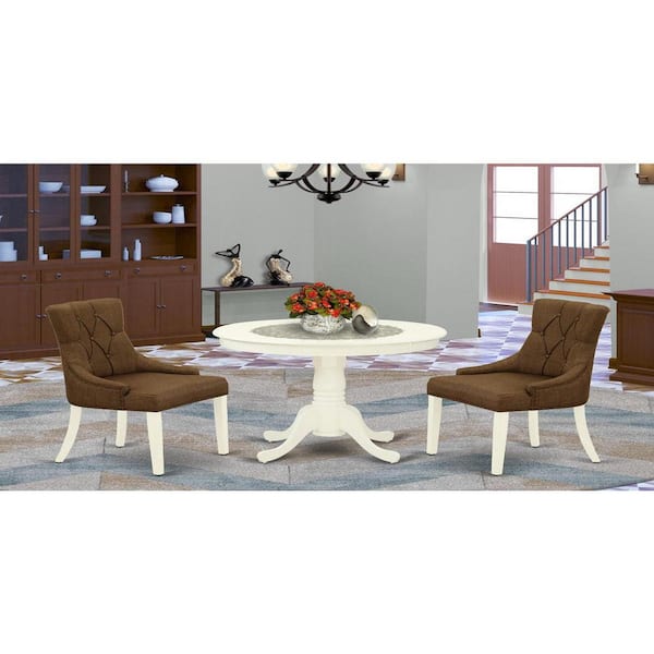 3-Piece Linen White Finish Solid Wood Top - Round Dining Room Set - Seats 4