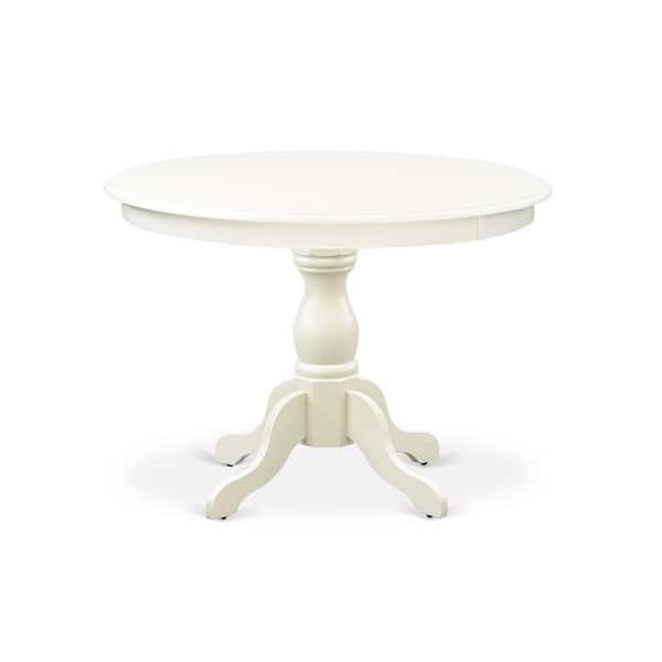 3-Piece Linen White Finish Solid Wood Top - Round Dining Room Set - Seats 4