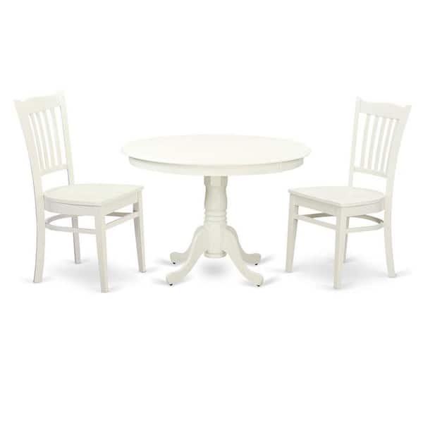 3-Piece Linen White Finish Solid Wood Top - Round Dining Room Set - Seats 4