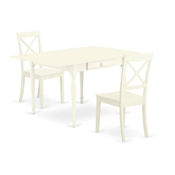 3-Piece Linen White Finish Solid Wood Top with Dropleaf Dining Table Set