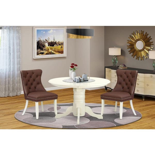 3-Piece Linen white Solid Wood Top - Round Upholstered Dining Room Set - Seats 4