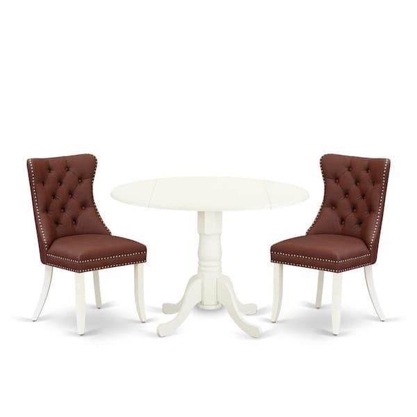 3-Piece Linen white Solid Wood Top-Round Upholstered Dining Room Set with Dropleaf-Seats 4