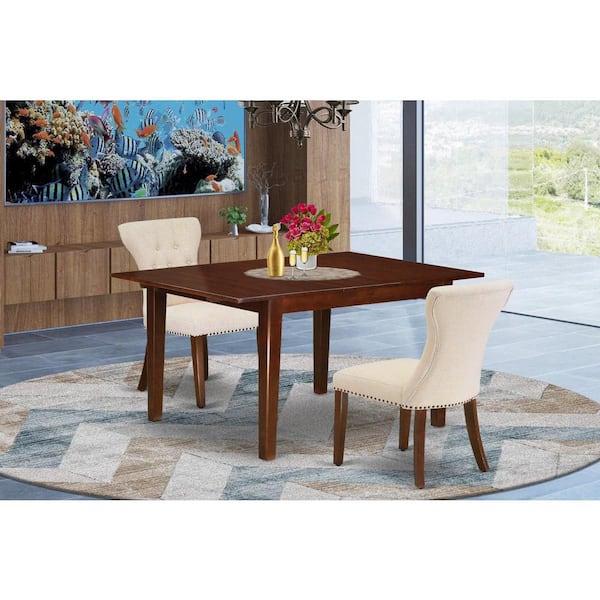 3-Piece Mahogany Finish Rectangular Solid Wood Top With Butterfly Leaf Dining Table Set