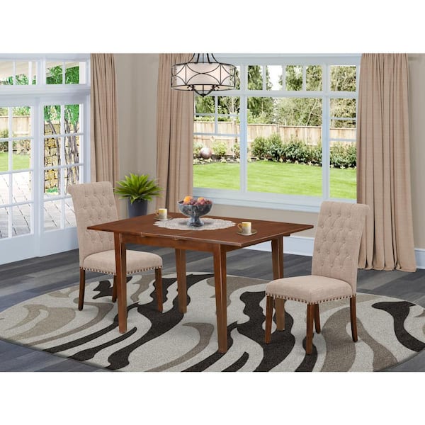 3-Piece Mahogany Finish Rectangular Solid Wood Top With Butterfly Leaf Dining Table Set