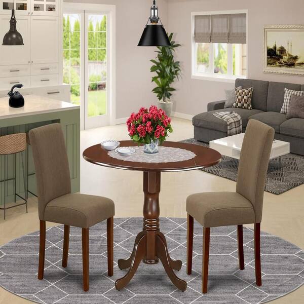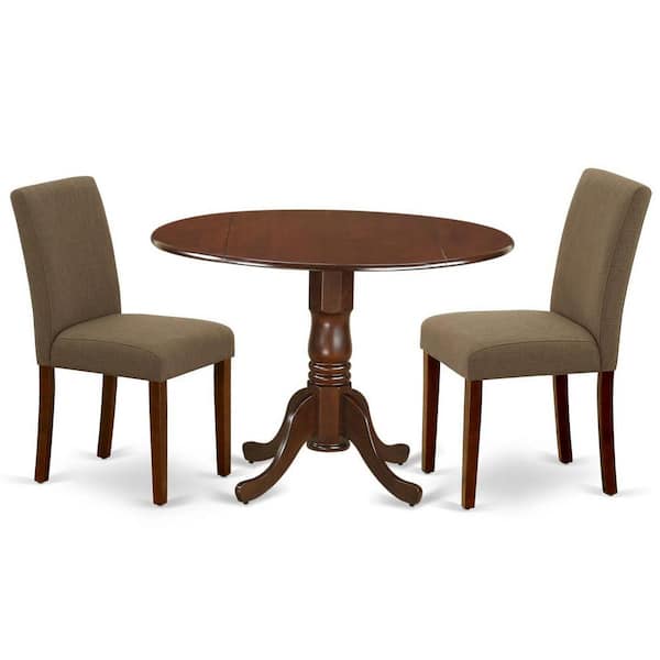 3-Piece Mahogany Finish Solid Wood Top-Round Dining Room Set with Dropleaf-Seats 4