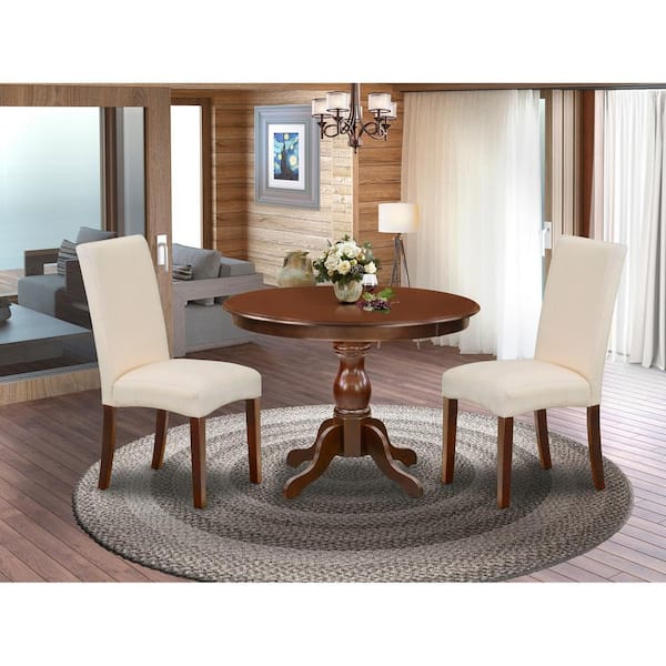 3-Piece Mahogany Finish Solid Wood Top - Round Dining Room Set with High Back - Seats 4